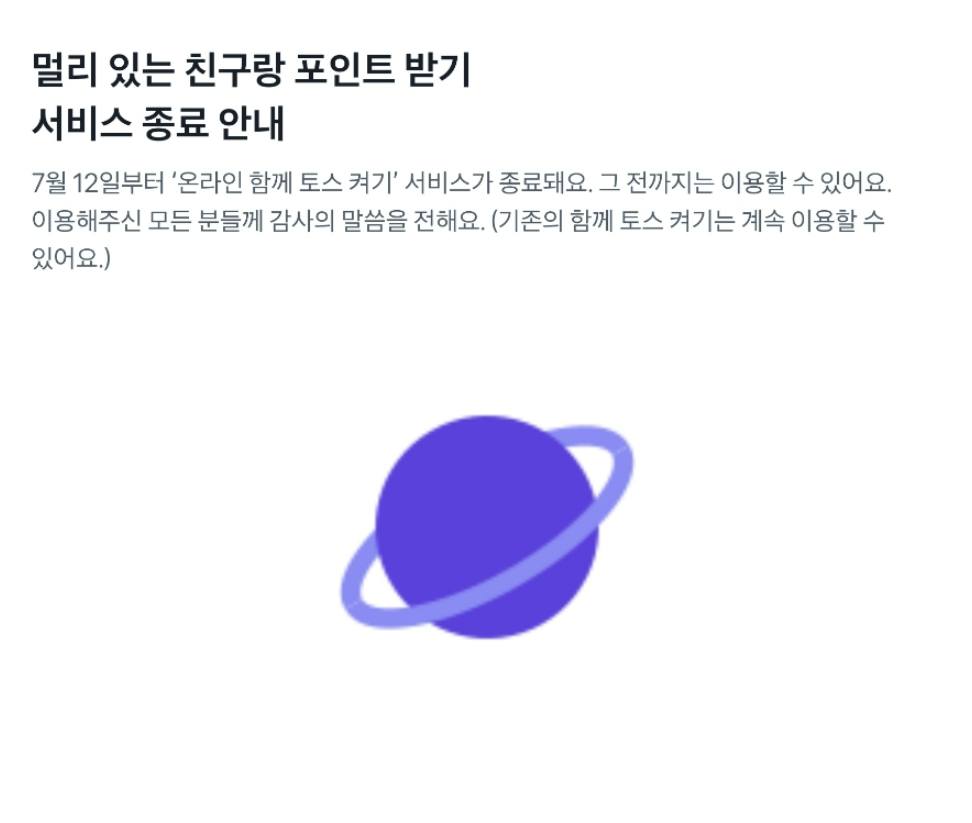 토스 우주켜기 품앗이가 요즘 참 핫합니다~!!토스 우주켜기 이벤트로 포인트 모으는 게 쏠쏠했어요~!! 하지만 두둥!!! 오늘 토스에서 7월 12일부터 토스 우주켜기 서비스 종료 안내를 했습니다. 언제 끝나도 사실 이상하지 않았던 이벤트였습니다. 얼마나 많은 사람들이 토스 우주켜기에 열광했는지 모두들 아실거라고 생각합니다. 그래도 아직 시간이 남았으니 우리 토스 우주켜기 품앗이 링크 공유 (60개)해드리겠습니다.