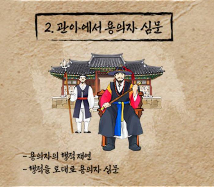 - 사또가 조사한 사건 내용확인 - 관아에서 용의자 심문